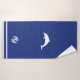 Ein dunkelblaues Handtuch mit weißem Delphion und Logo von h2g2.com - alles, was Sie auf einer Reise durch die Galaxie brauchen.