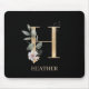 Letter H monogramm floral. Letter H in goldbrauner Textur mit grünen Aquarellfarben Blätter, Blume Blüten und Goldstaub. Personalisiert mit Namen in passendem Schriftart.