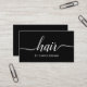 Geschäftskarte für Haar-Stylisten kennzeichnet moderne handgeschriebene Kalligraphie "Haar. Minimalistisches Artideal für Fachleutehaar-Stylisten und -salons.