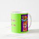 Haar-Stylistspaß und bunte Kaffee-Tasse.