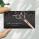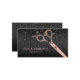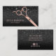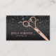 Hair Stylist Rose Gold Scissor Black Glitzer Salon Business Cards.