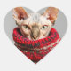 Haarlose Sphynxkatze im Pullover Herz-Aufkleber