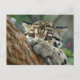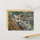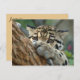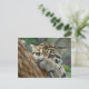 Junge Jaguar-Junge ist darauf bedacht, etwas zu erreichen. Foto der Spezies auf der Vorderseite und einige Infos auf der Rückseite.