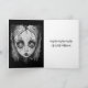 Halloween-Karte mit einer Überraschungsfarbenseite innen. Ein kleines Mädchen mit großen Augen, das eine gruselige alte antike Vintage Puppe hält. Sehr schöne ai art.
