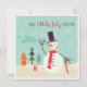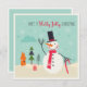 Dieses Urlaubsdesign besticht durch einen glücklichen Schneemann, der einen Zuckerrohr-Gehstock mit einem Haus und Weihnachtsbäumen im Hintergrund hält. Der Text "Habe ein heilig fröhliches Weihnachten" geschrieben in lustiger moderner handgeschriebener Schrift. Auf der Rückseite ist die bearbeitbare Meldung "Wünscht euch und eurer Familie eine wunderbare Urlaubssaison!" mit eurem personalisierten Namen unter #christas #holidays #seasonal #festive #snowman #snowflakes #winter #candy #candycane #modern #holly #jolly #trendy #moditable #editable #personalisiert #personalisiert #brietings #stationery