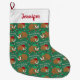 Müde von traditionellen Weihnachtsmotiven? Gewürztes mit einem lustigen und lustigen Wollhaarmammut Weihnachtsweih-Strumpf. In diesem Strumpf finden Sie Cartoon-Illustrationen von Wollmammut in festlichem Set in Rot und Grün vor einem grünen Hintergrund mit der Meldung "Have a Wooly Cool Weihnachten". Es ist bereit, mit Ihrem Namen an der Spitze in roten Schriftzeichen personalisiert zu sein.