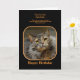 Eine tortoiseshell Katze bringt einen puren Geburtstagsgruß.