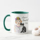 Niedliche skurrile Hand gezeichnet Volkskunst Mädchen und schwarz-weiß Katzenkaffee Tasse.