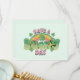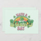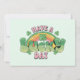 Vielen Dank Karte mit einem St. Patrick's Day Thema Bild. Ein Retro-Grunge-Stil, der sagt: "Viel Glück! Mit einem bunten Regenbogen dahinter. Wörter geschrieben in einem fetten abgerundeten Retro-Stil. Rosa und grüne Farben.