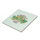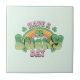 Keramik mit einem Motivbild zum St. Patrick's Day. Ein Retro-Grunge-Stil, der sagt: "Viel Glück! Mit einem bunten Regenbogen dahinter. Wörter geschrieben in einem fetten abgerundeten Retro-Stil. Rosa und grüne Farben.