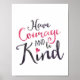 Haben Sie Mut und sind Sie freundlich rosa Aquarel Poster