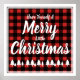 Das festliche Poster mit dem Satz "Haben Sie sich ein frohes kleines Weihnachtsfest" mit Büffel-Karo karierter Hintergrund, weißer Rahmen und niedlichen weißen Tannenbäumen.