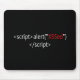 Hacker mousepad, das XXSed wachsamen Code auf schwarzem Hintergrund zeigt
