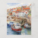Schönes Aquarell-Bild von Booten in einem englischen Küstenhafen, perfekte Kunst, um Ihre traditionelle Nachricht zu ergänzen.