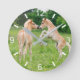 Zwei niedliche Haflinger Fohlen haben Spaß, Aufzucht und Frosch auf einer Wiese. Die blonde Flachskastanienrasse wird auch Haffiden oder Avelignese genannt. Foto von Katho Menden. Diese Wanduhr mit Dial-Platte ist eine verzauberte Geschenkidee für Pferdeliebhaber.