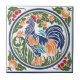Ein bunter Barnyardhahn, umgeben durch Frucht und Blumen.