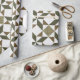 Ein Steppdeckenmusterentwurf der Blöcke in Grünem und in Braunem mit einem Hahnentrittmusterdruck.