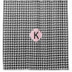 Mit Monogramm Schwarz-Weiß-Hahnentrittmuster mit pastellrosa Duschvorhang. Das Design ist mit einem klassischen Hahnentrittmuster-Muster in Schwarz und Weiß und einer pastellrosa Vierblattform mit individueller Erstausstattung ausgestattet.