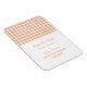 Einfaches und elegantes Hahnentrittmuster Speichern Sie das Date Magnet mit einem trendigen Orange- und Weiß-Hahnentrittmuster-Hintergrund. Einfach an Ihre Hochzeitsdetails anpassen. Klicken Sie für weitere Anpassungsoptionen auf die Schaltfläche Anpassen.