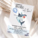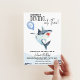 Ein lustiges Hai-Thema mit einem Aquarellhai, der einen glänzenden Hut auf dem Party hat und einen Ballon mit einer großen Nummer drei auf ihm hält. Niedlich und modern. Ideal für Ihre Kinder Dritter Sommer Pool Party Geburtstag.