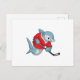 Hai beim Eishockey mit Eishockeystick Postkarte