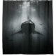 Dieser Duschvorhang hat einen Hai im dunklen Ozean.