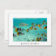 Postkarte eines Riffhais, der Schmetterlingsfische jagt, während er die blaue Lagune der pazifischen Insel Bora Bora, in der Nähe von Tahiti in Französisch-Polynesien mit weißer Grenze und dem Text: "Bora Bora" taucht.