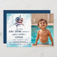 Shark Jawsome, unter dem Meer, jede uralte Kindergeburtsinvitiation mit der Illustration von lustigen niedlichen Babyhai lächelnd Aquarell in sanft blauen Farben gemalt. Bitte ersetzen Sie das Beispiel-Foto durch Ihr eigenes.
