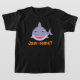 Niedlicher T - Shirt zum Thema Hai, mit einem lächelnden blauen Hai mit "Kiefer-einige" unter dem orangefarbenen Comic Buchschrift.