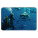 Das Shark and Diver Foto Print wird auf einem flexiblen Magneten eines Tauchers und Haies angezeigt. Foto wird durch KI erzeugt. Lizenziertes Bild