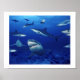 Poster mit weißer Grenze und Foto-Druck von Haien in der Tiefsee. Passen Sie dieses Objekt an oder kaufen Sie, wie es ist. Bild