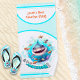 Das Strandtuch der Jungen mit dem niedlichen, fröhlichen Hai mit dem Text "Das Meer ist kitzlig, gehen wir" in wunderschönen, hellen Sommerfarben für einen Urlaub oder im Sommer. Personalisieren Sie den orangefarbenen Text einfach und vergessen Sie nicht, den Laden für passende Artikel zu besuchen. :) Kate Eden Art