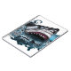 Originelles Design eines Hais, der aus dem Wasser kommt. Erstellt mit Stiften, Stiften und farbig in Fotoshop.