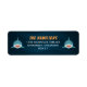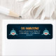 Niedliche Rücksendeadressen-Aufkleber zum Thema Haie mit orangefarbenen und weißen Schriftzeichen auf marinebasischem Hintergrund mit zwei lächelnden blauen Haie. Entworfen, um sich mit unserer Hai Köder Geburtstagssammlung abzustimmen.