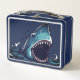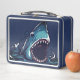 Blue Lunchbox mit Hai, der aus dem Wasser kommt.