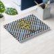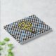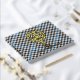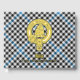 Clan Haig crest badge surrounded by a strap and buckle over check tartan background. Custom front, back and spine text.
