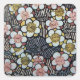 HAIKU/SCHWARZ-WEISS PINK GELBE BLUMEN QUADRATISCHER AUFKLEBER