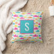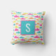 Einfaches, aber süßes Hai-Muster Kissen in Aqua, Rosa, Orange, Gelb und Minzgrün mit Monogramm Initial.
