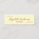 Diese Creme Mini-Visitenkarte hat eine Reihe von roten handgeschriebenen Skripten für Ihren Namen auf der Vorderseite. Zusätzliche Texte für Ihren Titel finden Sie unter dem Skript. Auf der Rückseite befinden sich auch vier Zeilen Text für Ihren Salon-Namen, Adresse und Telefonnummer. Alle Texte können bearbeitet oder gelöscht werden.