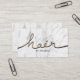 Hair Stylist Gold 3D Script Elegant White Marble Hair Salon Business Cards.