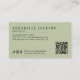 Trendy modern elegant hair stylist / hairdresser business card with trendy chic handwritten script typography in simple minimalist sage green and black. Suitable for hairstyle salon, beauty salon, hairdresser, professional hairstylist. +++++++++++++++++++++ Perfect choice for an elegant stylish sophisticated professional look. ++++++++++++++ Easy to personalize on both sides with your business info, name, title, contact details, social media, and scanable digital QR code!