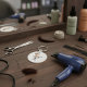 A hairdresser with scissors and a hair dryer. This design looks really effective on these Keychain