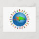 Niedliche Cartoon-Abbildung einer Gruppe von Jungen und Mädchen, die sich um den Globus hielten und eine Landkarte von Haiti zeigt. Nützliches Image für die Unterstützung der Kinder Haitis nach dem Erdbeben-Desaster. Bilder auf verschiedenen Geschenken und Produkten erhältlich.