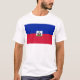 Flagge von Haiti. Die Flagge Haitis besteht aus zwei horizontalen Balken, blau über rot, mit einem weißen Streifen mit haitianischem Wappen versehen. Das Wappen zeigt eine Trophäe von Waffen, die bereit sind, die Freiheit zu verteidigen, und eine königliche Handfläche für die Unabhängigkeit. Die Palme wird von der Höhle der Freiheit überragt. Das Motto lautet auf einer weißen Schriftrolle mit L'Gewerkschaft Fait La Force ("Unity macht Stärke").