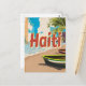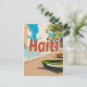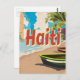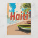 Haitis Vintages Urlaubspenster mit Strand und Fischerbooten.