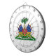 Dieses Design zeigt das nationale Wappen von Haiti (offiziell als die Republik Haiti bekannt), ein Land auf der Insel Hispaniola in der Großen Antillen Archipel der Karibik. Haiti liegt östlich von Kuba und Jamaika und südlich der Bahamas und der Turks- und Caicosinseln. Haiti besetzt den Western-Teil von Hispaniola, die Insel, die es mit der Dominikanischen Republik teilt. Haiti ist das bevölkerungsreichste Land der Karibik. Die Hauptstadt und größte Stadt Haitis ist Port-au-Prince.