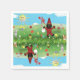Eine farbenfrohe Serviette mit einer spielerischen Szene mit Haji Firuz auf einer lebendigen Wiese. Der Charakter, traditionell in seiner roten Kleidung gekleidet, tanzt fröhlich mit einem großen Lächeln auf seinem Gesicht, sein schwarzes Gesicht in einer lustigen und lebendigen Weise gemalt. Um ihn herum zwitschern und hüpfen eine Gruppe von bezaubernden Küken gerne herum, während sich ein großes, dekoriertes Ei in der Nähe befindet, das die Neuanfänge und die Feier von Nowruz symbolisiert. Die Wiese ist voll von bunten, hellen Blume, und der Himmel ist klar, was die fröhliche Atmosphäre der Serviette noch verstärkt. Dieses lebhafte und festliche Design vereint das Wesen Nowruz und bringt Wärme, Freude und Tradition zu jeder Feier.