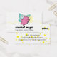 Süße Tier- oder Monstermärchen mit einem Häkelhaken auf dieser Visitenkarte für geflochtene Garnhandwerke, personalisiert mit Ihrem Farbschema und Schriftart, ideal für Geschenkartikel und Kunsthandwerksverkäufe.