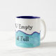 Halb leere, halb volle Tasse mit unserem gemalten, texturierten blauen Hintergrund, der die Tasse auf halbem Weg nach oben (oder unten) erreicht. Was bist du? Eine halb volle oder halb leere Person? Optimist oder Pessimist? Beschlüsse, Beschlüsse. Passen Sie Ihre Einstellung heute an und kaufen Sie eine halb leere, halb volle Tasse heute!