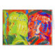 Zwei halb abstrakte Oberflächendrucke eines Mädchens. Hellgelb, orange, lila blau